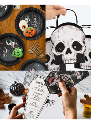Rose Skeleton Halloween Monster Bash Paper Plates 24Pcs