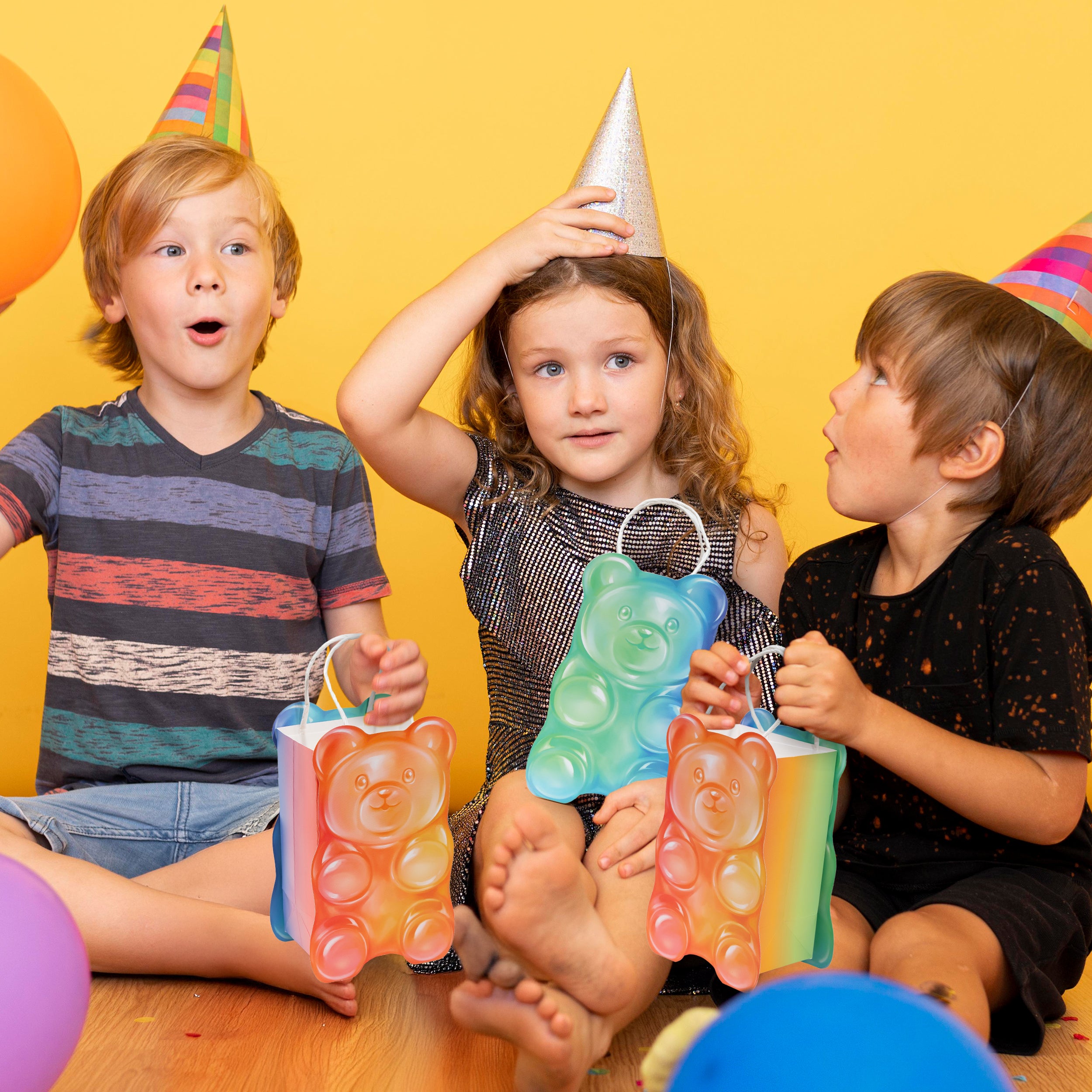 Perfect for kids birthday parties, baby showers, candy buffet supplies, gummy bear themed parties, and sweet party bag events. Ideal for decorating dessert table decorations or using as a cute addition to kids party candy bag assortments.