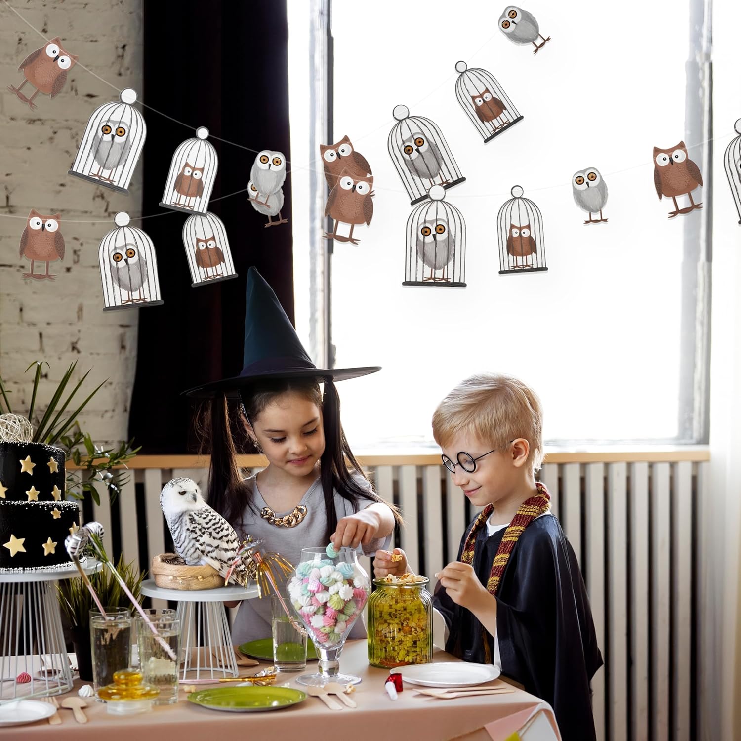 Add a touch of magic to your owl-themed celebration with our enchanting Owl Garland. This versatile package includes two garlands, each adorned with 12 intricately designed owls, in a captivating blend of grey and brown tones. Perfect for creating a whimsical atmosphere, these garlands are ideal for wizarding parties, witchy costume gatherings, and other magic-themed events.