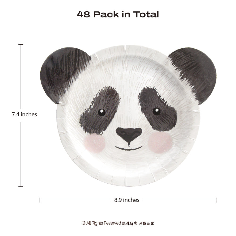 - 48pcs of Panda face shaped paper plates, each of 7 inches in size.