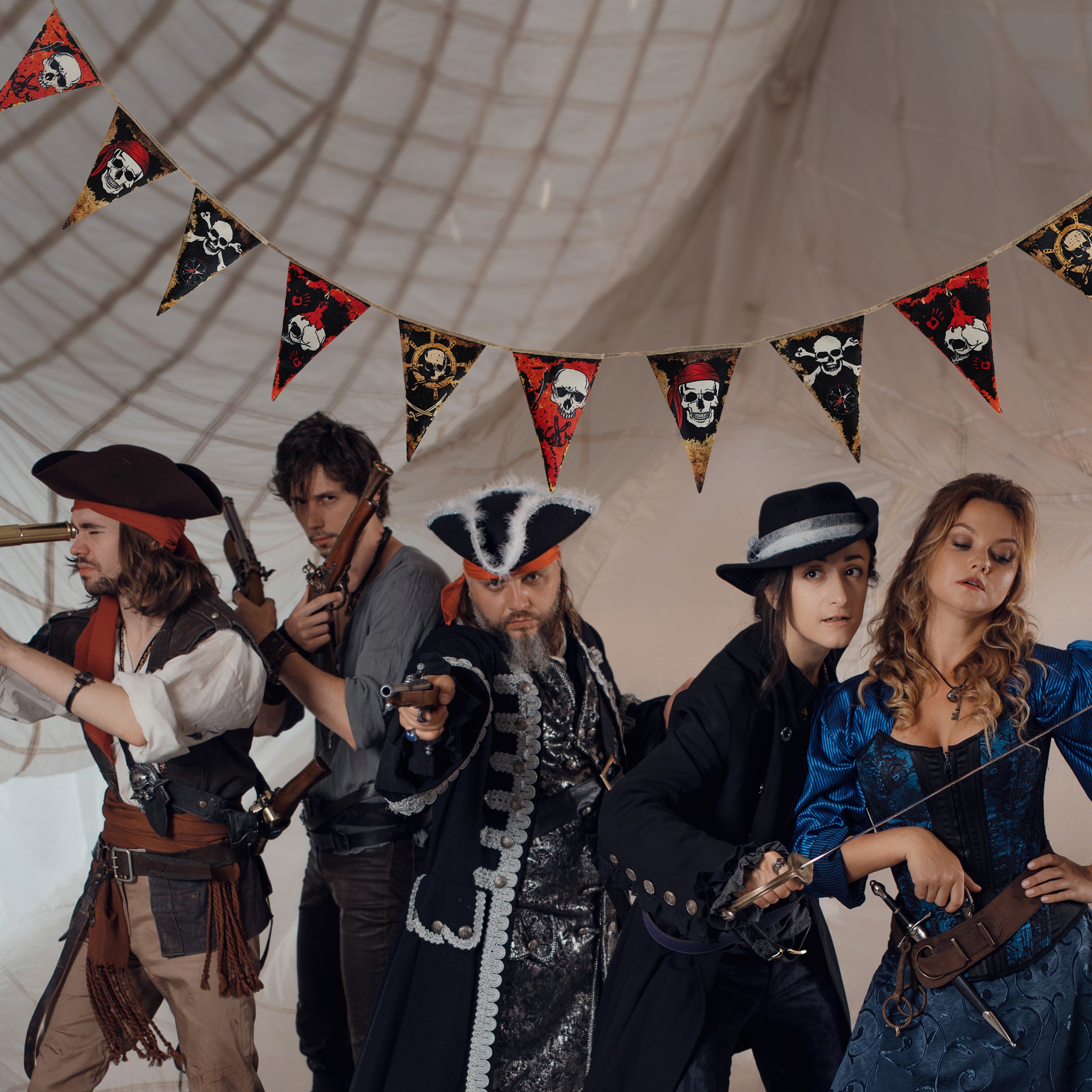 Crafted from durable fabric with distressed detailing, this vintage pirate bunting adds a realistic touch to any pirate-themed birthday party, Halloween event, summerween or spooky summer gathering. Each pennant is pre-strung on sturdy twine and ready to hang, making setup quick and hassle-free.