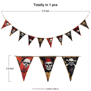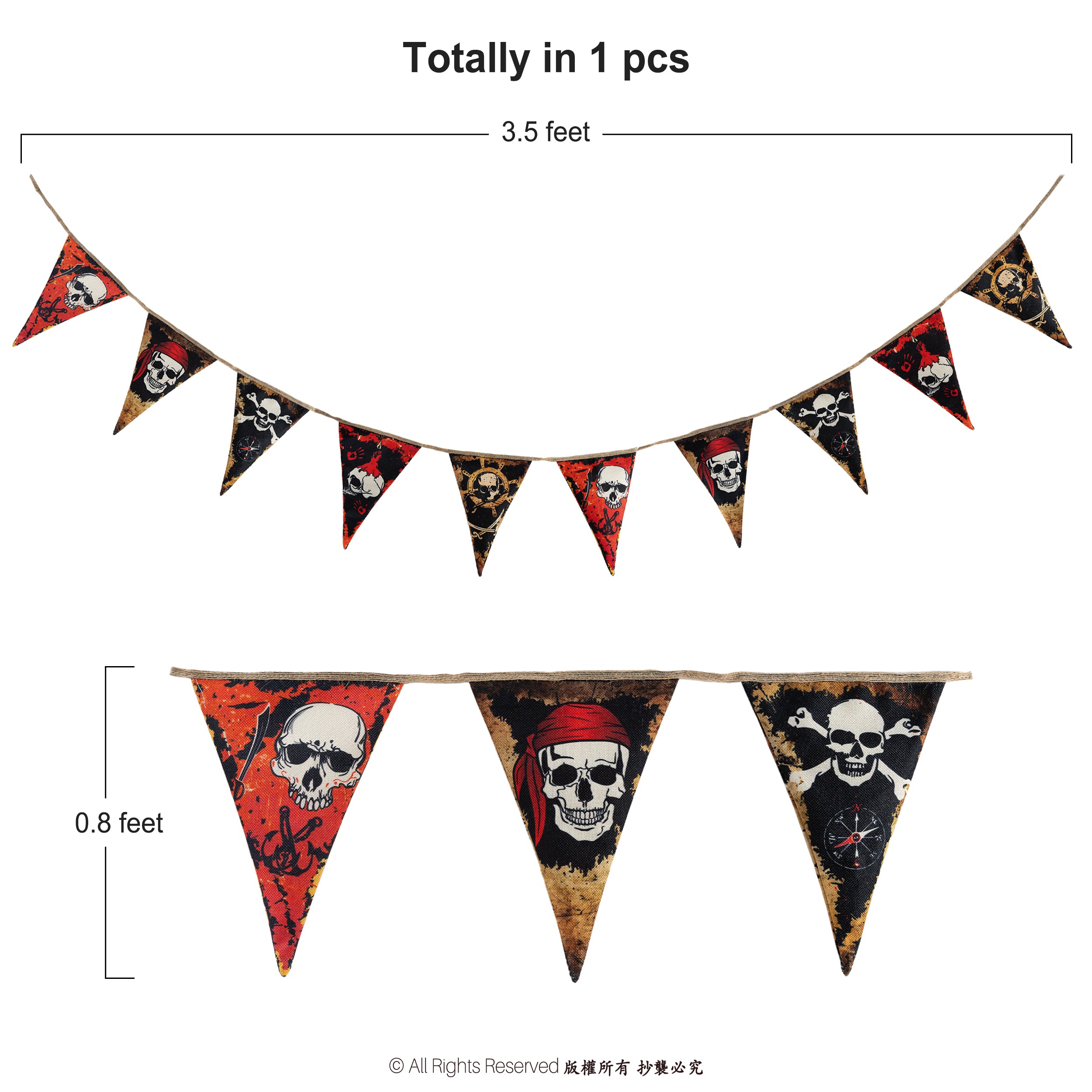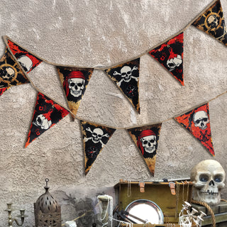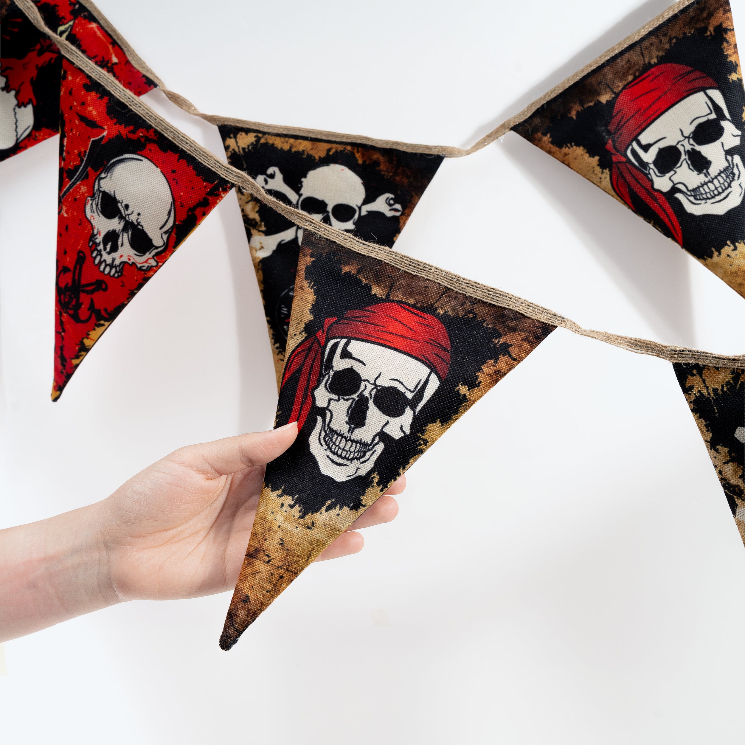Whether you're hosting a boys pirate birthday, decorating a haunted pirate ship for Halloween, or adding flair to a beach or ocean-themed party, this pirate flag garland fits right in. Hang it across walls, tables, entryways, or outdoor fences to set the scene for treasure hunts, costume parties, or classroom decor.