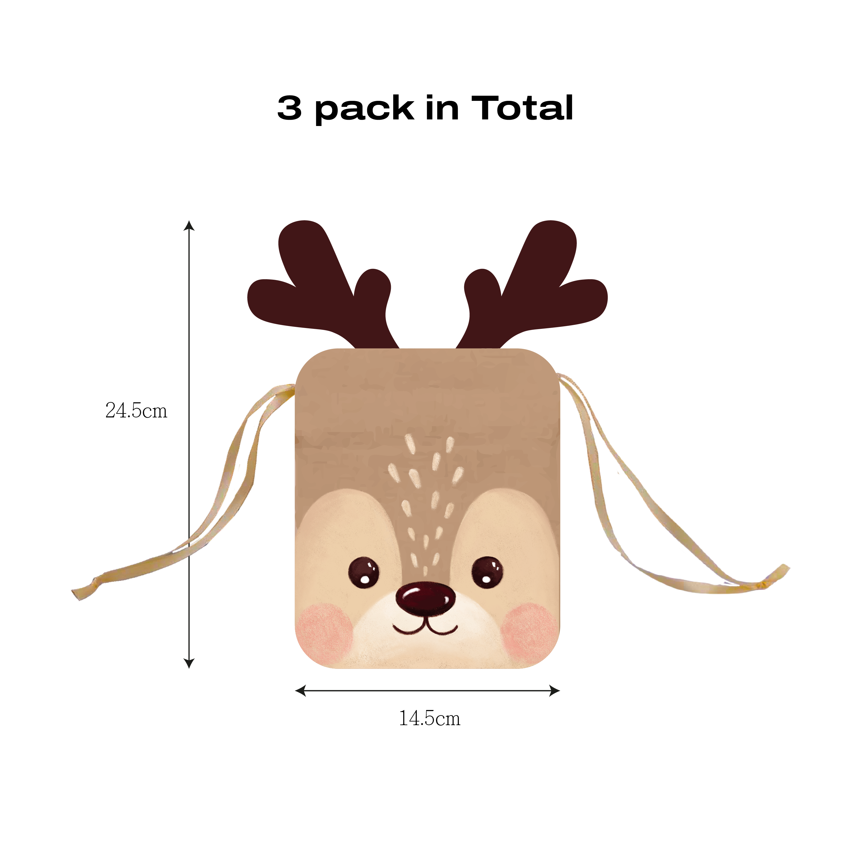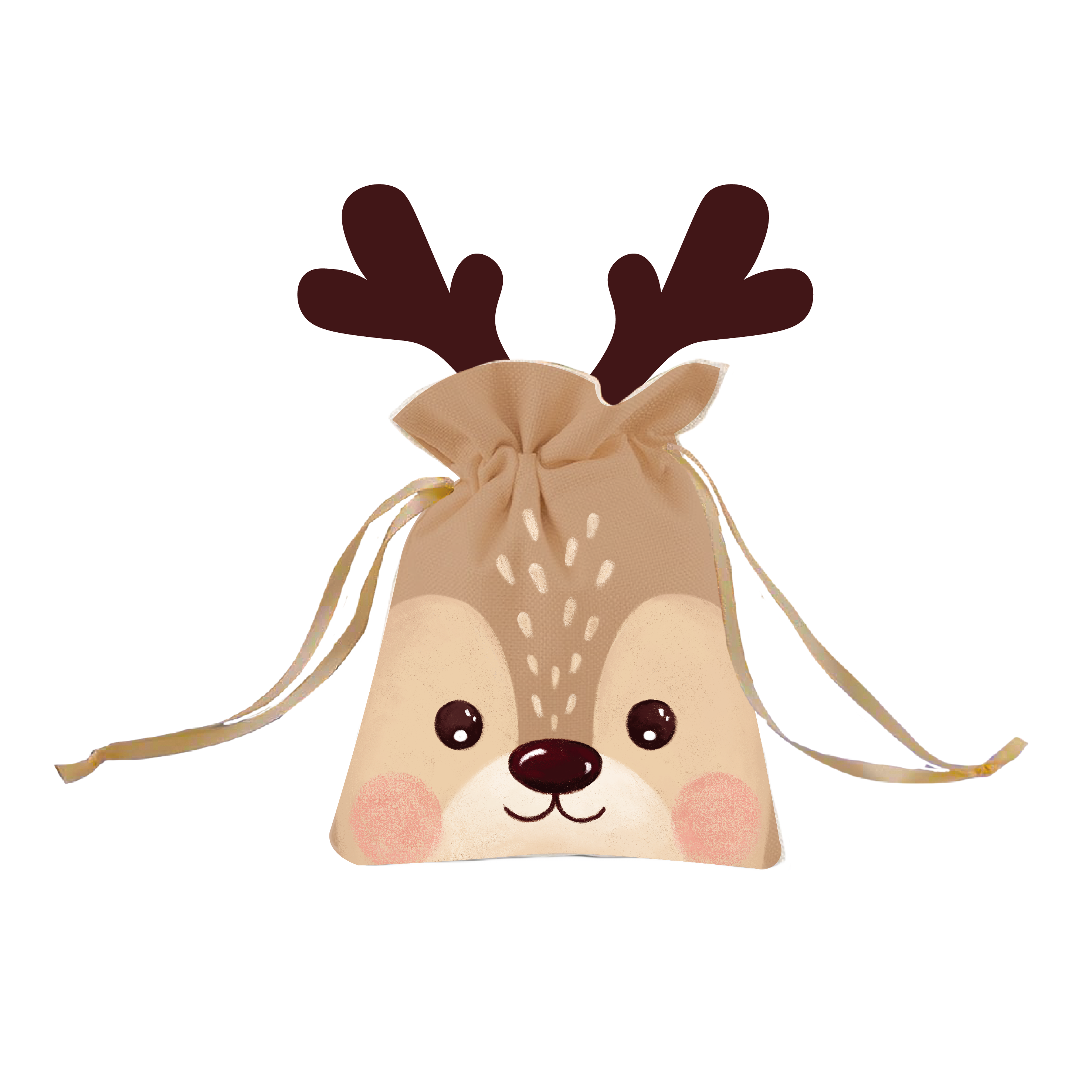 Stand out this festive season with exclusive reindeer-themed drawstring party bags. The 3D antlers and linen texture offer a rustic winter animal charm, ideal for themed holiday décor or gift-giving.
