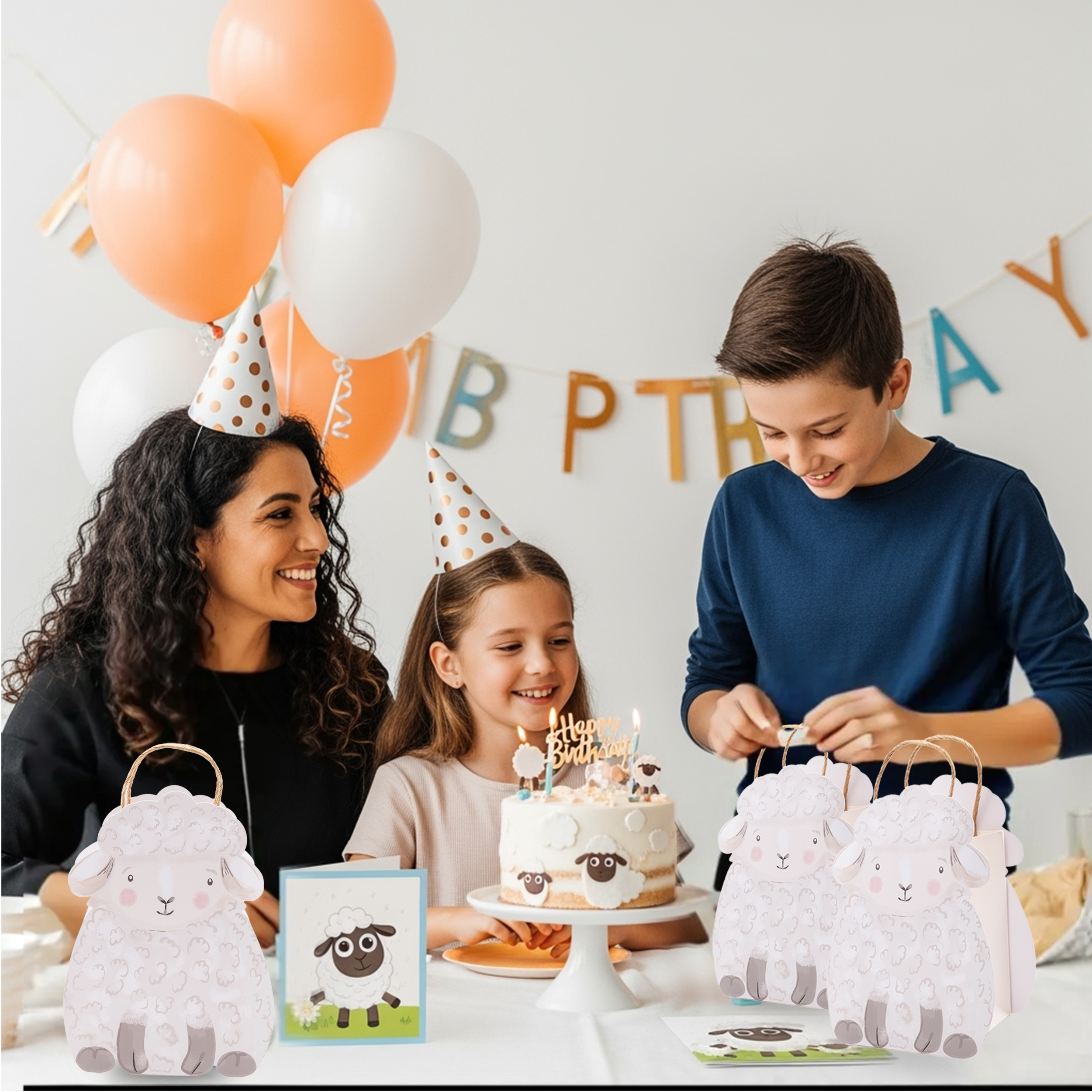 Crafted with a charming farmyard style, these cute sheep gift bag options stand out as unique farm animal party favor bag choices. The playful sheep silhouette makes them an ideal match for barnyard party supplies, farm theme birthday decorations, or Easter lamb party supplies.