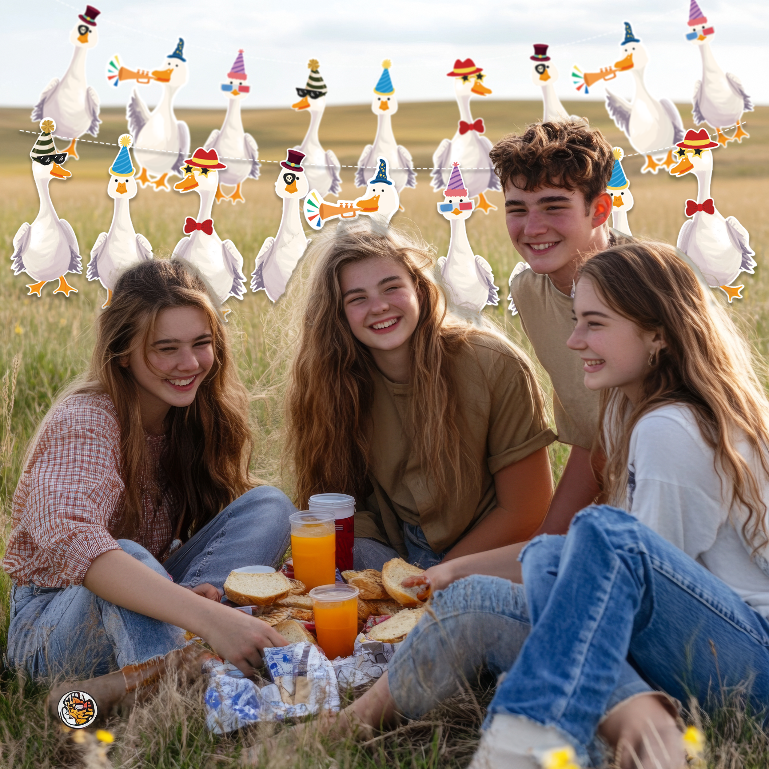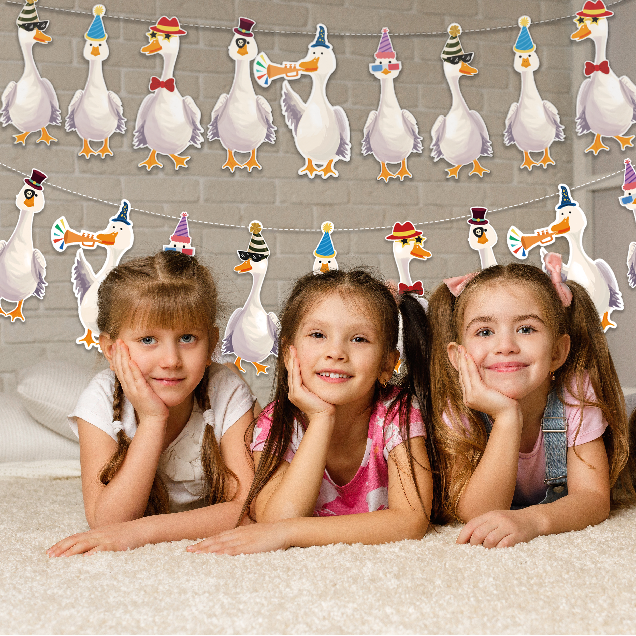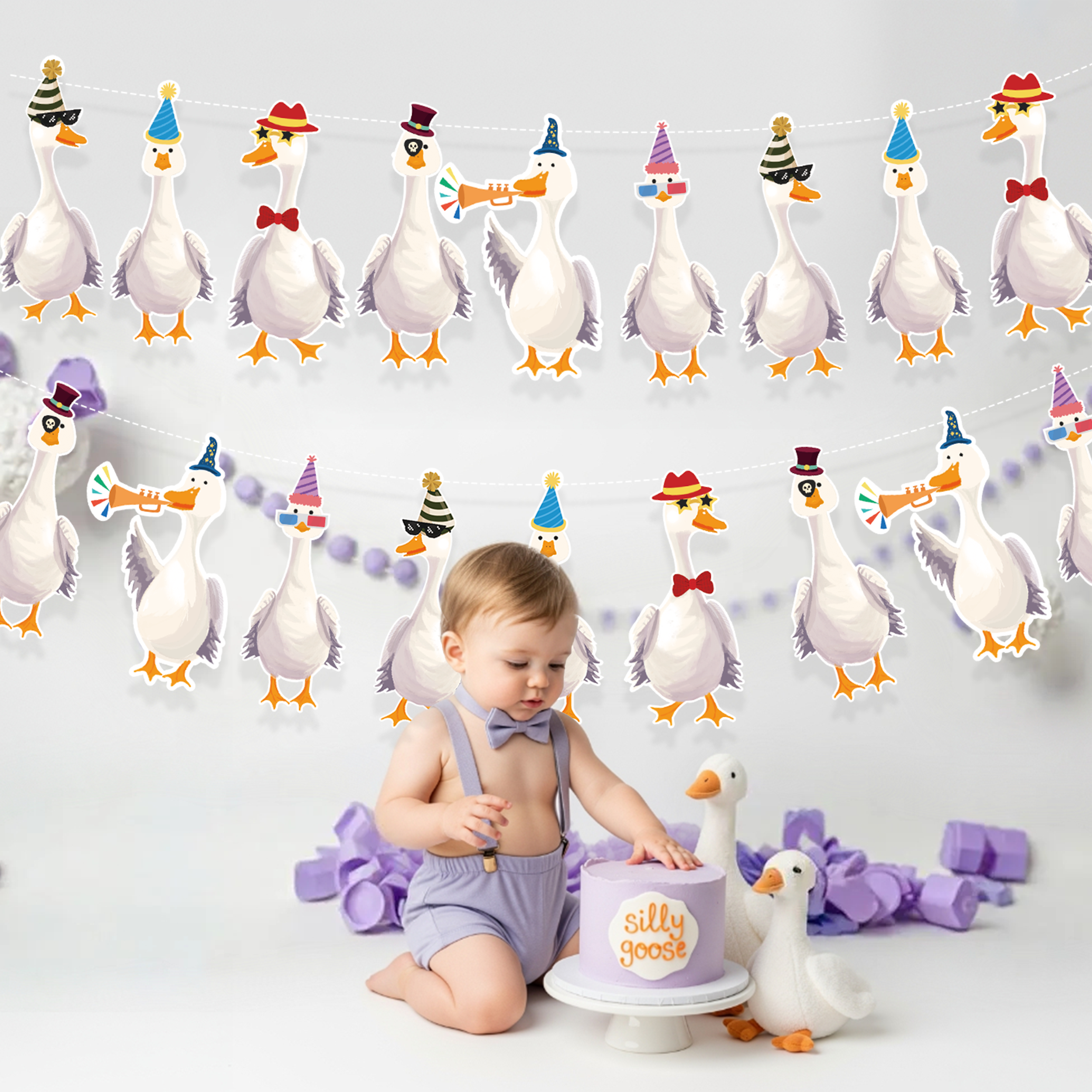 Add a dose of playful charm to your next celebration with this hilarious, silly goose garland set! Featuring two rows of geese dressed to impress, with hats, glasses, and ties, this whimsical, silly goose party banner is sure to make guests smile. It’s a perfect fit for everything from silly goose baby shower decor to barnyard birthday parties and quirky adult get-togethers.