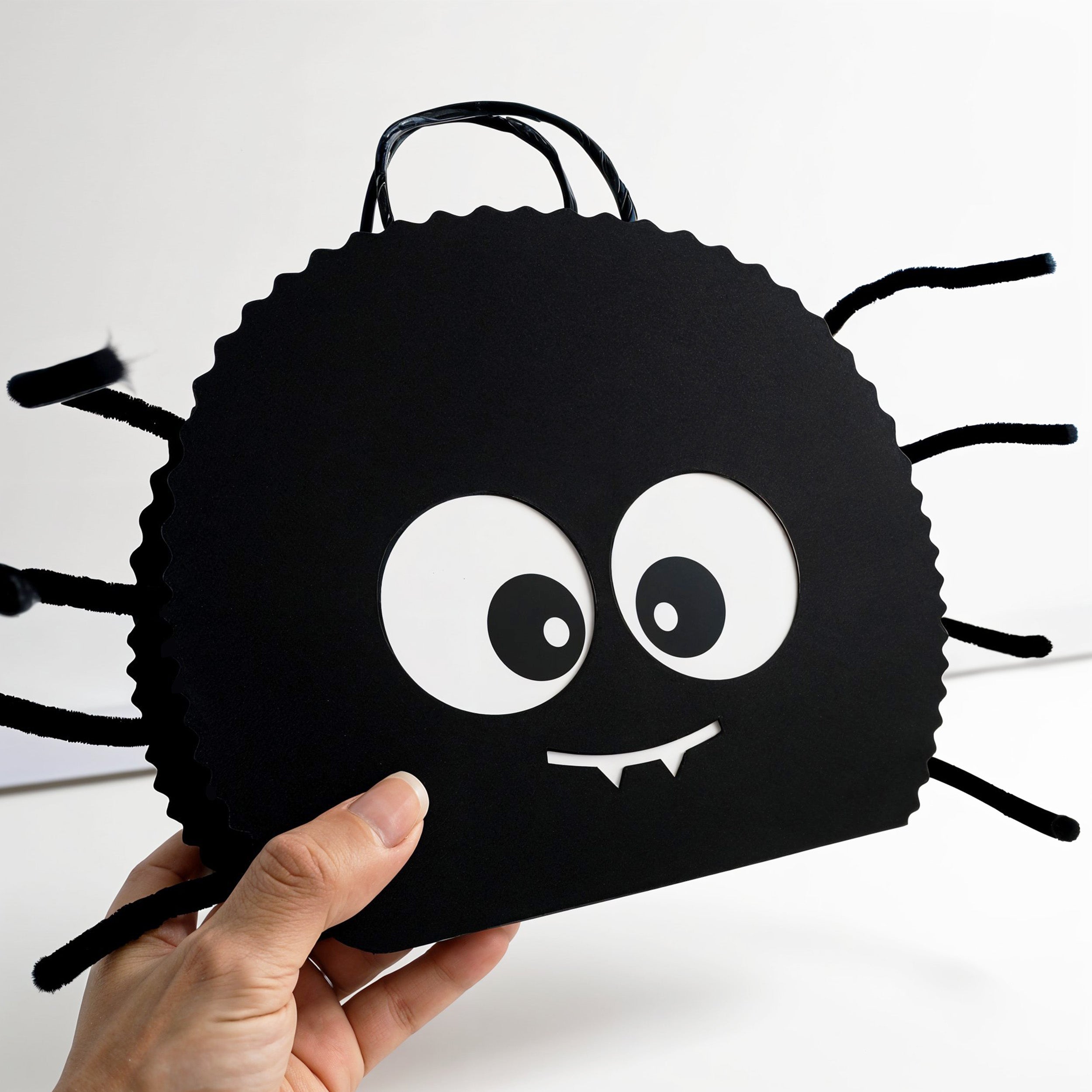 4 spider gift bags per set, making it perfect for smaller gatherings, classroom gifts, or a family-friendly Halloween party. Great for Halloween candy bags, trick or treat bags for kids, or spooky birthday party decorations. These spider gift bags feature black glitter cardstock, pipe cleaner spider legs, googly eyes, and a sturdy handle. Perfect for Halloween party decorations, Summerween parties, witch-themed birthdays, and spooky baby showers.