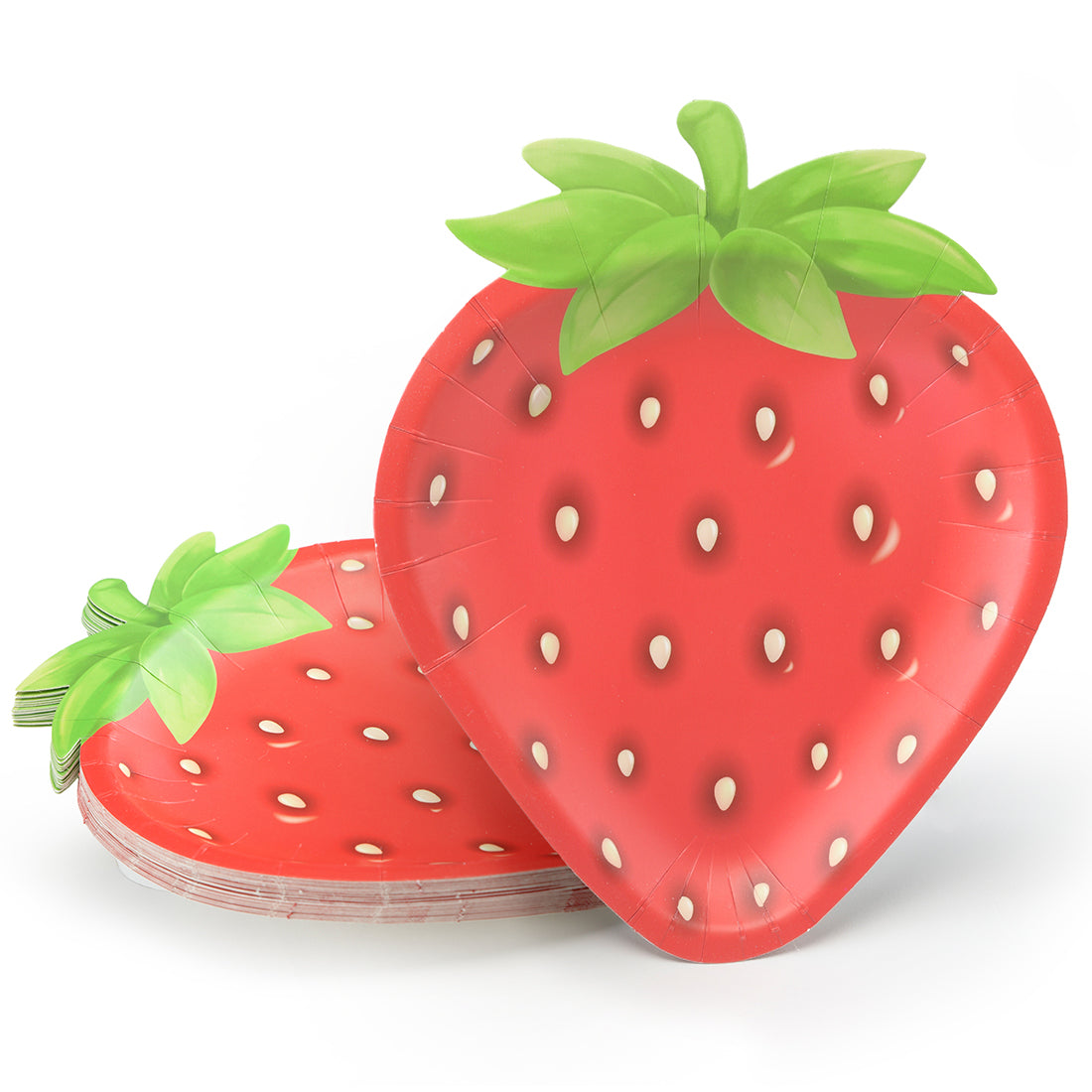 Add a berry sweet touch to your celebration with these Strawberry Shaped Party Paper Plates! This 24-pack of 7-inch strawberry plates is perfect for kids birthdays, baby showers, garden parties, and more. Featuring a cute red strawberry with green leaves, these fruit shaped plates are ideal for snacks, cake, and desserts. Made from durable, food-safe paper, they’re strong, disposable, and easy to clean up. Great for strawberry shortcake party supplies, summer fruit party supplies, and kawaii party plates. A fun and festive choice for any strawberry themed party or berry first birthday!