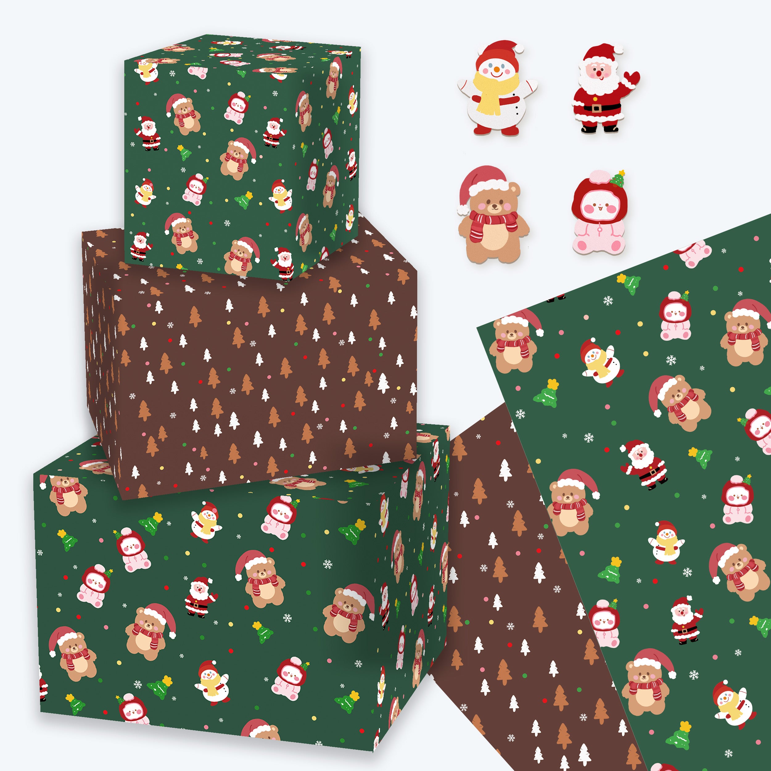Bring festive magic to your gifts with this 12-pack of Christmas wrapping paper sheets. Set includes 6 green sheets with snowmen, bears, and Christmas trees, plus 6 rustic brown sheets with holiday trees and confetti. Perfect for Christmas gift wrap, Secret Santa, classroom presents, corporate gifts, or winter birthdays. Made from durable, tear-resistant paper, these sheets fold easily, store flat, and add charm to holiday parties, teacher gifts, and winter wonderland celebrations.