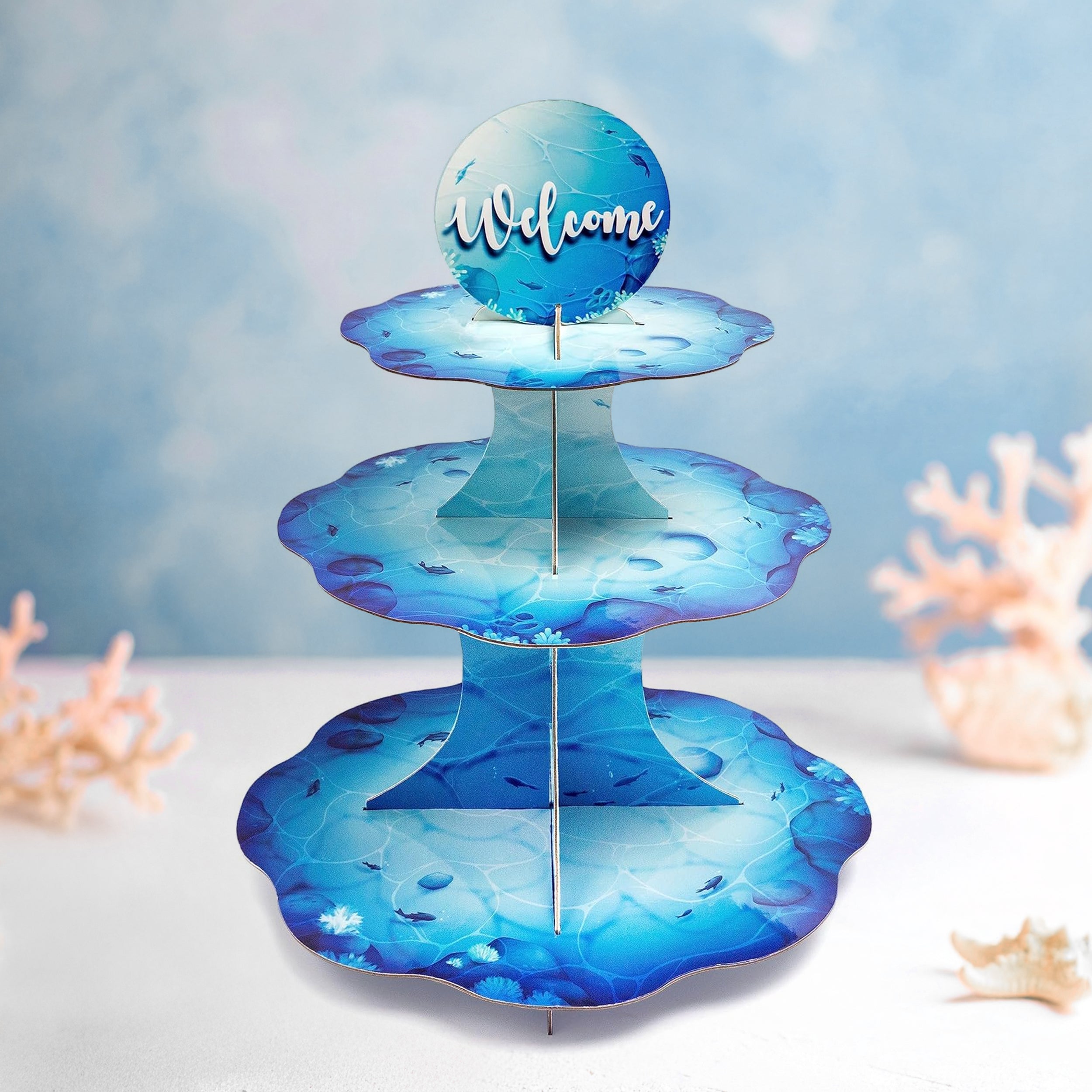 Under The Sea Welcome 3-Tier Blue Cupcake Stand