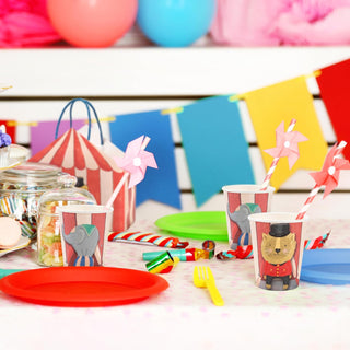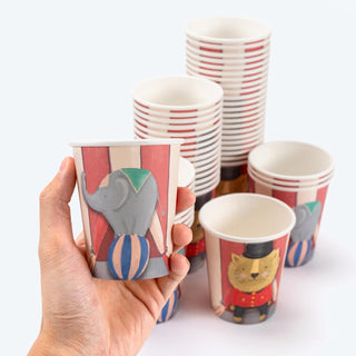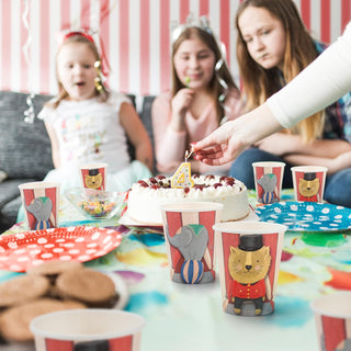 What makes this collection stand out is its exceptional durability and distinctive design. Made from thicker paper than standard disposable cups, these circus-themed cups feature playful red and white stripes with elephant and lion prints, making them ideal for both boys and girls. These exclusive circus animal designs are unique to our collection, adding a playful touch to any event.