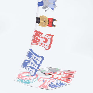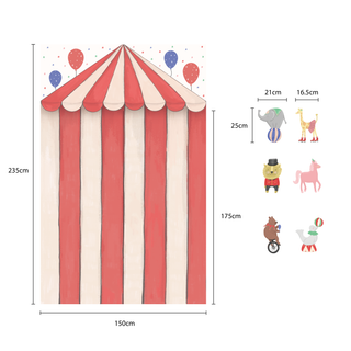 • Circus-themed 'Welcome' banner featuring cutouts of a seal, elephant, bear, lion, and giraffe. Measuring 195 cm.
