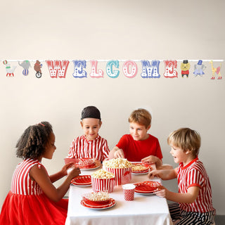 Welcome guests to your event with our vibrant Circus Party Welcome Banner! Featuring playful cutouts of circus animals like a seal, elephant, bear, lion, and giraffe, this 195 cm banner adds a fun and festive touch to any party. Made from durable cardstock, it's easy to hang and perfect for birthday parties, carnival-themed events, or any celebration needing a pop of color and whimsy. This banner instantly transforms your space into a circus wonderland, making it ideal for creating a joyful atmosphere!