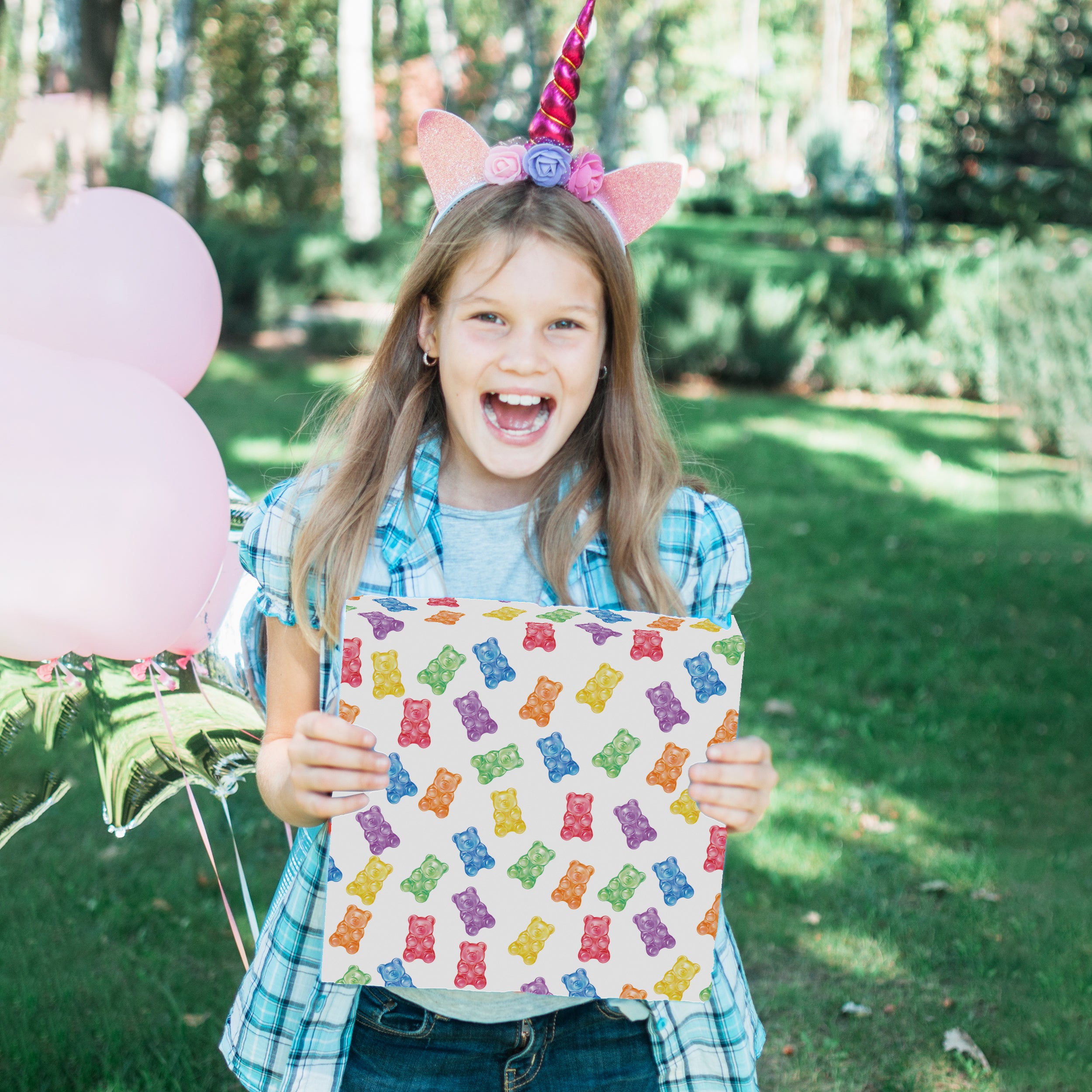 ✔ Kid-Friendly Fun: Bright gummy bears and candy prints make unwrapping as fun as the gift itself!