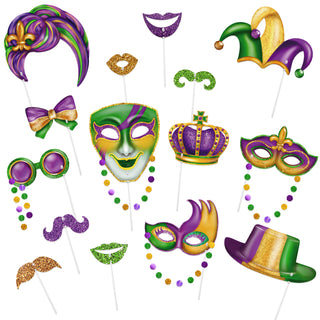 Mardi Gras Fat Tuesday Party Photo Props (15Pcs)