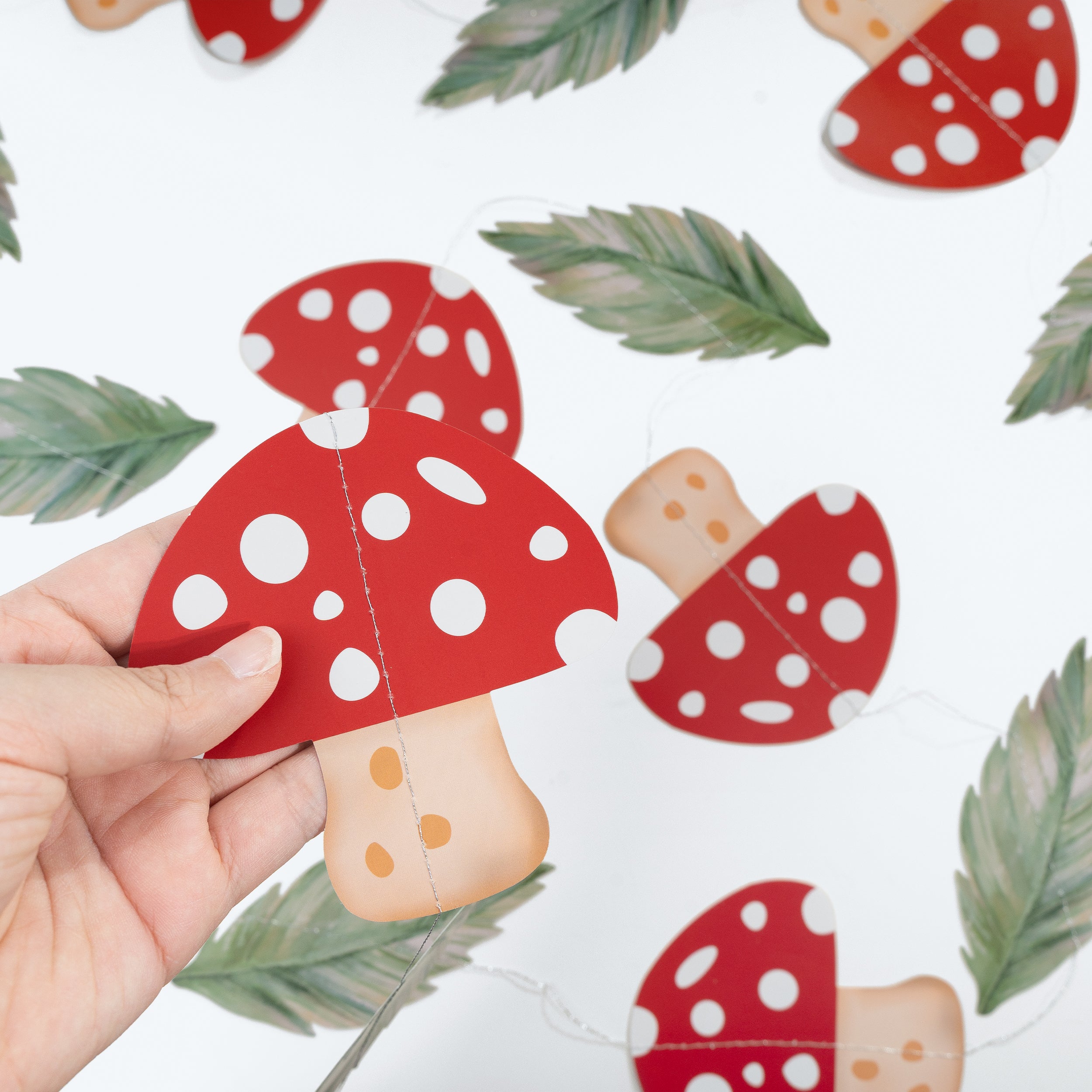 Stand out from generic party decor! Our mushroom leaf and dot garland features detailed, handcrafted-inspired patterns of toadstool and green leaves, making it a must-have for enchanted forest parties, fairy tale events, and woodland-themed celebrations.