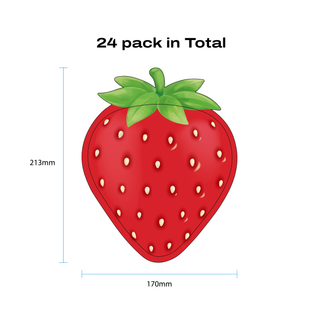 This pack includes 24 strawberry shaped paper plates, each 7 inches in size. Perfect for cake, snacks, or finger foods, these strawberry party paper plates are great for small hands and big smiles.